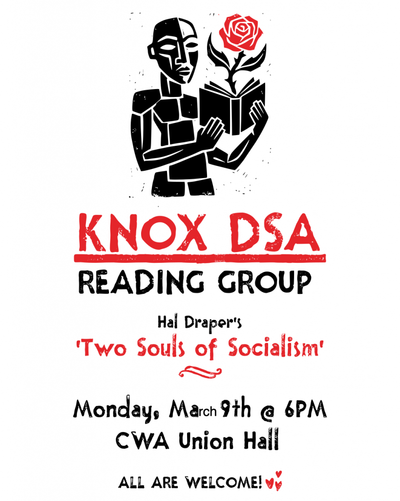 Knoxville DSA is a local of the Democratic Socialists of America. We believe that both the economy and society should be run democratically to meet human needs, not to make profits for a few. We are a political and activist organization, not a party; through campus and community-based chapters DSA members use a variety of tactics, from legislative to direct action, to fight for reforms that empower working people.